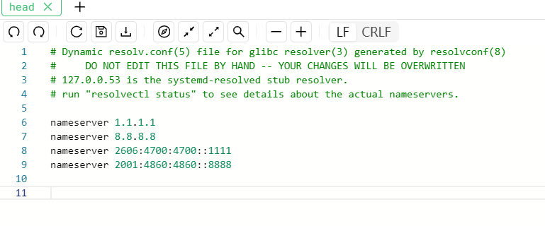 1.直接编辑路径/etc/resolvconf/resolv.conf.d文件夹下的head文件: